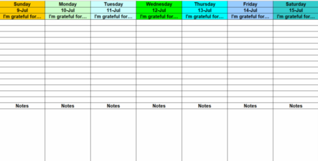 My coach also began encouraging me to start making gratitude lists around this time, even if they just consisted of basic needs being met, like “I have a warm bed to sleep in”. I was skeptical, but I figured if I was going to give it a shot, I might as well be organized about it because I love making charts! This is what I made and used.