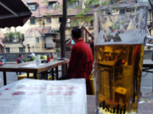 I noticed that when I drank, the volume in my ears lowered considerably. For the first year or so, that became my emergency wonder drug when I couldn’t stand it any longer. I took this picture sometime during that year, and cyclist in the beer mug is a great metaphor for what a large part of that year was for me.